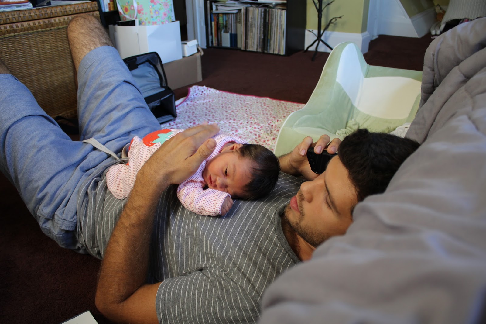 It is worth noting that he had forgotten the part during birthing class when we learned about baby taking her first breath. Once the head comes out, the doctor politely asks the mom to stop pushing (horrible, horrible) so that he can suction the baby's nose. She does not take her first breath until the shoulders emerge and she is suctioned so that the first deep breath is clean. Stephen forgot this important piece of information and thought our daughter was dead when her head emerged. Longest 30 seconds of his life, but he was able to mask his horror well and kept saying, "She's beautiful! You're doing great, babe!" "She has so much hair!"